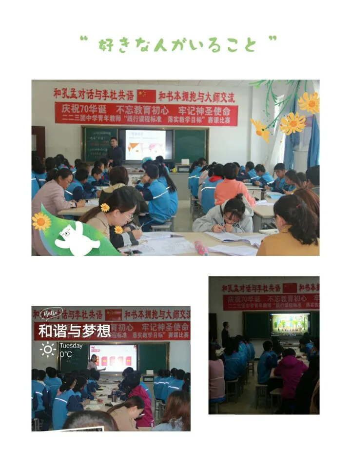 在教研中,集体备课与公开课周周呈现,从序言课到复习课分阶段进行备课、说课、磨课、评课、再授课、再评课;大型活动、读书汇报等活动在教研中穿插开展;青蓝工程师徒结对从不放松,在刘敏、顾平、孟宪婷等老教师的示范作用下,李鑫、龚永波等青年教师迅速成长,成为青年教师队伍的新秀。